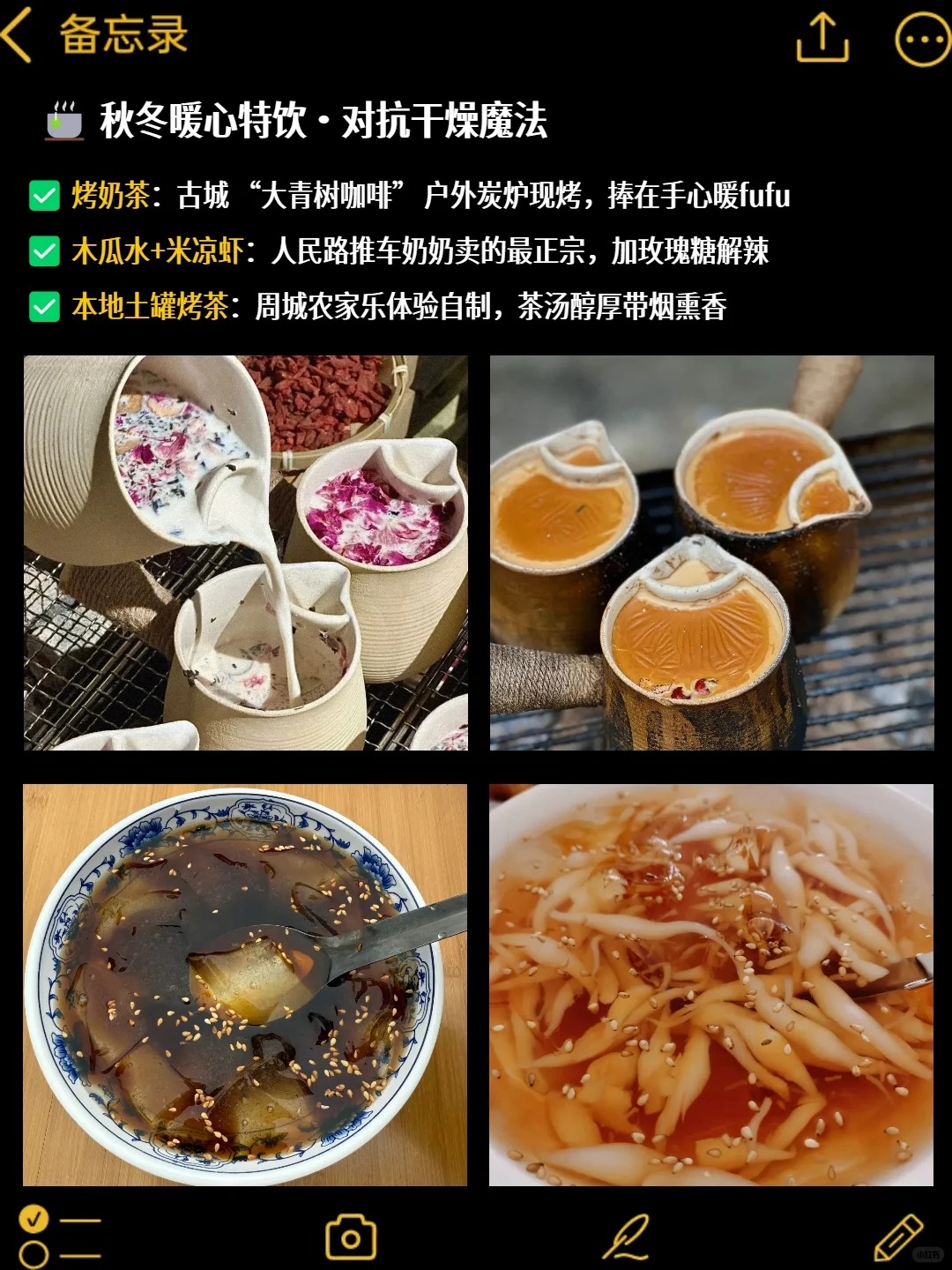 桂花釀:本地農戶現釀的桂花酒,度數低微甜,配著烤乳扇吃,秋日氛圍感拉滿。記得買玻璃瓶裝的,方便帶走